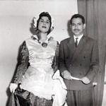 الفنانة زينب بعد العرض الأول لفيلم سعيد افندي تخرج من صالة السينما يحيط بها المعجبون والى جانبها احد اشقائها