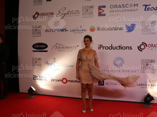 صور| شدة الرياح تتسبب في حرج لفنانات "الجونة ال...