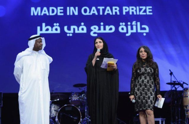 فرج الدهام، وداد الكواري وهيفاء المنصور أثناء حفل توزيع الجوائز في مسرح الريان الدوحة 2012 خلال مهرجان تريبيكا السينمائي في 22 نوفمبر 2012 في الدوحة، قطر