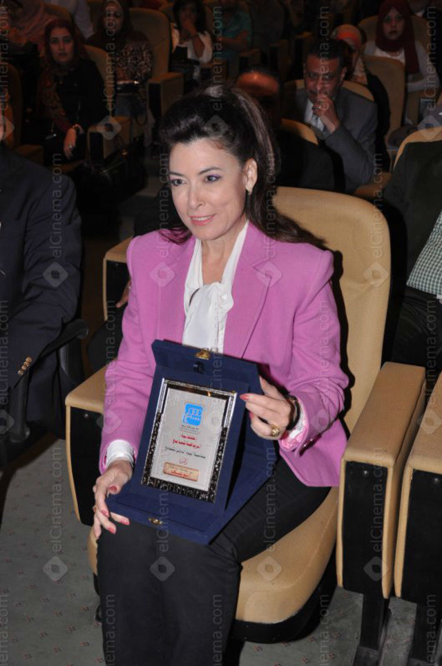جانب من حفل تكريم الاتحاد المصري للثقافة الرياضية للفنانة أنوشكا ولاعب كرة القدم وائل جمعة.