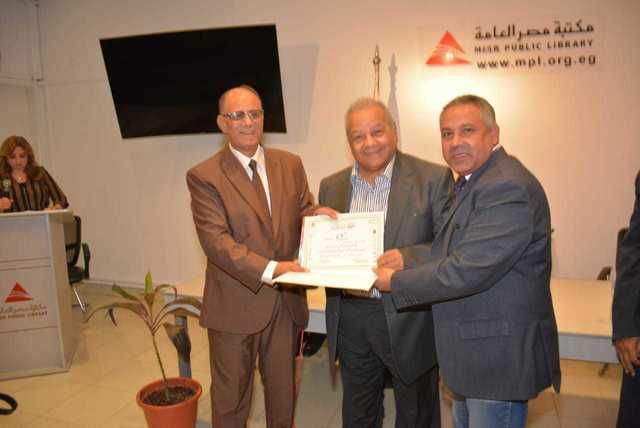 المخرج / على عبد العال .... أثناء تكريمه عن مجمل أعماله من اتحاد الناشرين العرب .. ويقوم بتسليمة شهادة التكريم ... الدكتور / أبراهيم المعلم . رئيس الاتحاد والإذاعي / شريف عبد الوهاب ..امين عام شعبة الإذاعين بالاتحاد