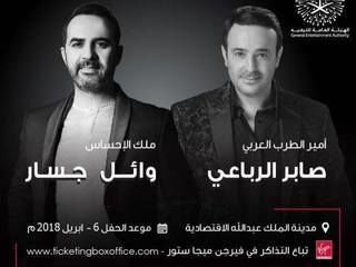 "الرباعي" و"جسار" نجوم حفل السعودية 6 أبريل