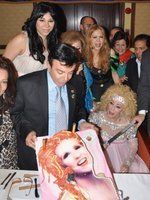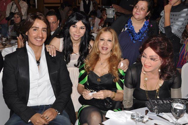 صورة لنبيلة عبيد وايمان وغادة ابراهيم هاني البحيري في حفل عيد ميلاد الشحرورة الـ 83 عام 2011.