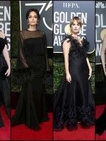 نجوم حفل توزيع جوائز الجولدن جلوب على السجادة الحمراء.