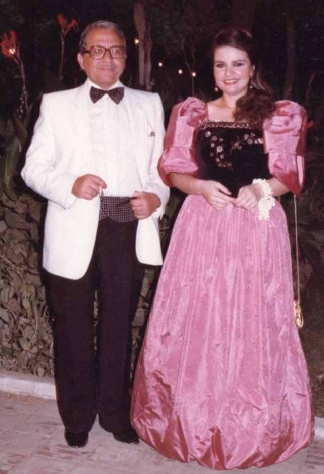 سهام ابراهيم مع الموسيقار المرحوم احمد فؤاد حسن قائد الفرقة الماسية في حفل في القاهرة