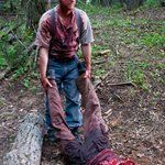 لقطة من فيلم "Tucker & Dale vs Evil" يظهر فيها ألان توديك "تاكر" يجر إحدى الجثث.