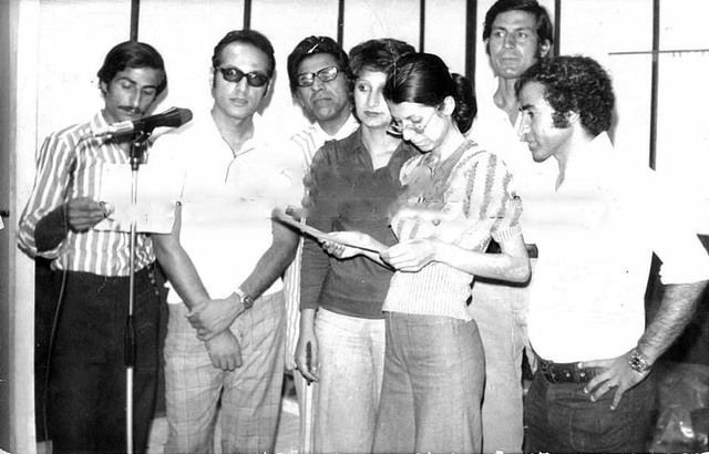 اخذت هذه الصوره في سبعينات القرن الماضي في اذاعة بغداد لاحد المسلسلات الإذاعية. الاسماء من اليمين قاسم الملاك, انور عباس، المرحوم غازي التكريتي، فوزيه حسن ، روناك شوقي ، سعدي يونس وعزيز كريم .