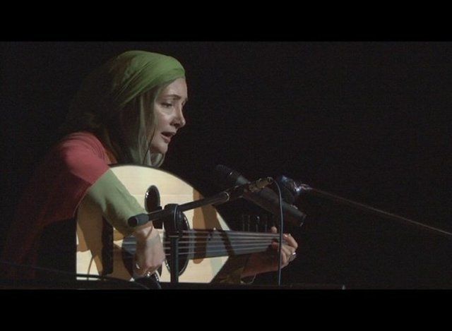عايدة اﻷيوبى تعزف على العود فى أحد الحفلات