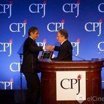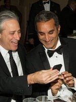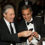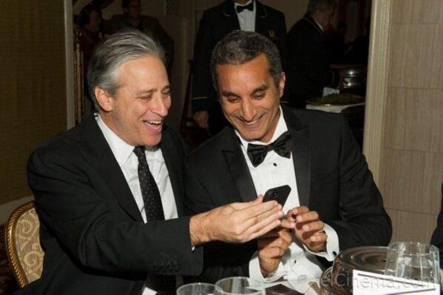 صورة للإعلامى باسم يوسف مع الإعلامى الأمريكى جون ستيوارات