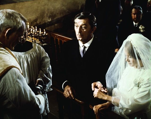 فى الكنيسة يعقد القس كولينز قران مايكل على روز ويبدو ريان والد العروس فى خلفية الصورة.