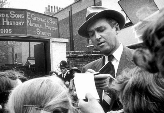 جيمس ستيوارت يوقع الاوتوجرافات للمعجبين.