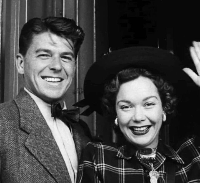 جين وايمان مع زوجها الممثل رونالد ريجان ولاحقاً الرئيس الأمريكي فى الثمانينيات.