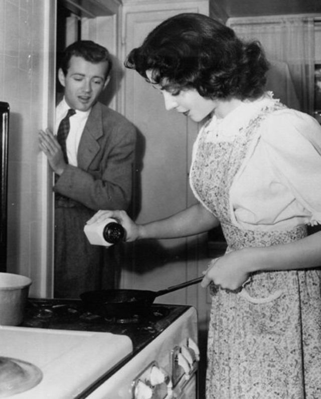 جينيفر جونز تستعرض مهارتها فى الطهى أمام زوجها روبرت ووكر.