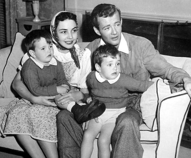 جينيفر جونز مع زوجها وابنائهما بالمنزل.