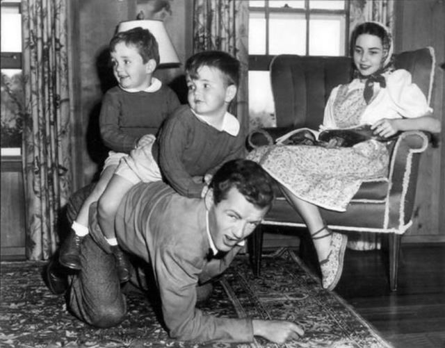 جينيفر جونز فى منزلها مع زوجها روبرت ووكر وأبنائهم مايكل و روبرت الإبن.