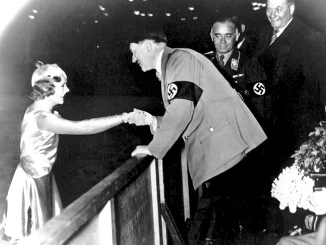 سونجا هيني تصافح الزعيم النازى أدولف هتلر فى الدورة الأولمبية عام ١٩٣٦
