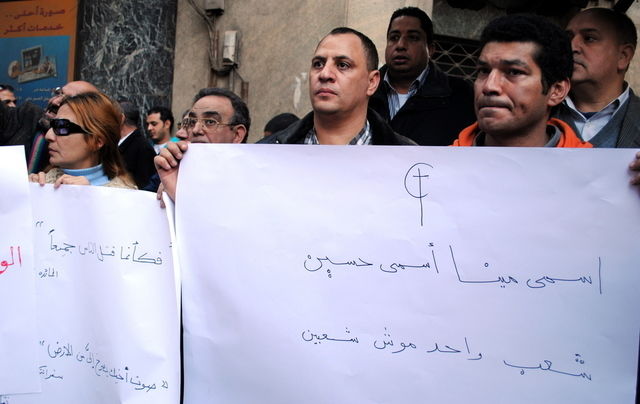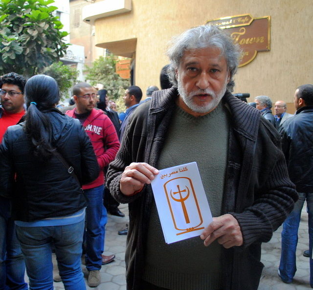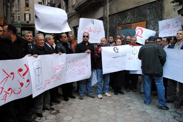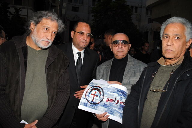في خطوة تُحسب لفنانين مصر ، قام عدد كبير من أعضاء نقابة المهن السينمائية أمس الثلاثاء ، بتنظيم وقفة احتجاجية أمام مقر النقابة بشارع عدلي في وسط البلد ، تنديداً بأحداث العنف والإرهاب التي شهدتها كنيسة القديسين ليلة رأس السنة ، وتضامناً مع أهالي الضحايا والمصابين .