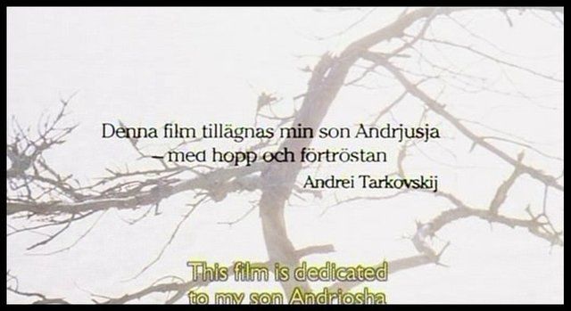 كانت اللقطة الخِتامية للفيلم ، آخر لقطة لتاركوفسكي ، هِيَ لَوحة لشجرةٍ في طَورِ النّمو ، كُتِبَ عَليها "إهداء إلى ابني أندريوشا" .