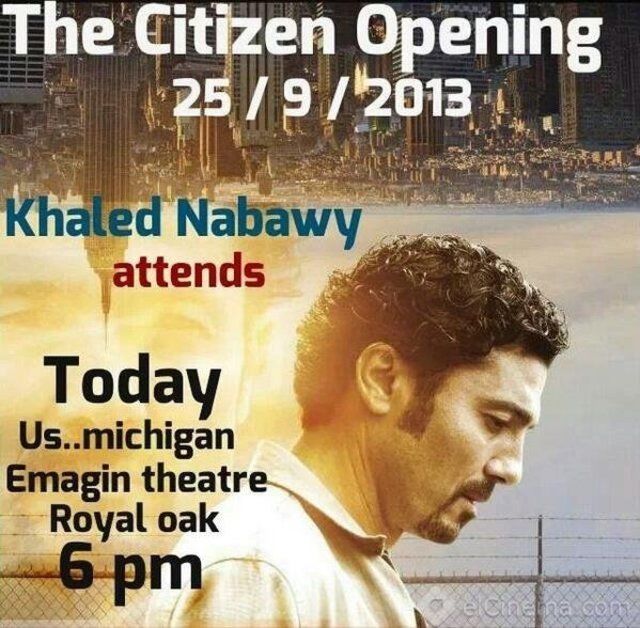 نشر الفنان خالد النبوى عبر حسابه الشخصى بموقع التواصل الاجتماعى تويتر تصميم يشير إلى مواعيد عرض فيلمه الأمريكى " المواطن " الذى يبدأ عرضه اليوم بدور السينما الأمريكية.