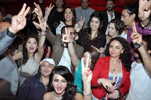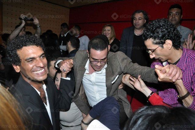 وقد حرص عدد من الفنانين على التواجد وتهنئة صناع الفيلم ومن بينهم المنتج محمد السبكي والمطرب الشعبي محمود الليثي الذي يشارك بأغنية "زلزال" في العمل والفنانة وفاء عامر.