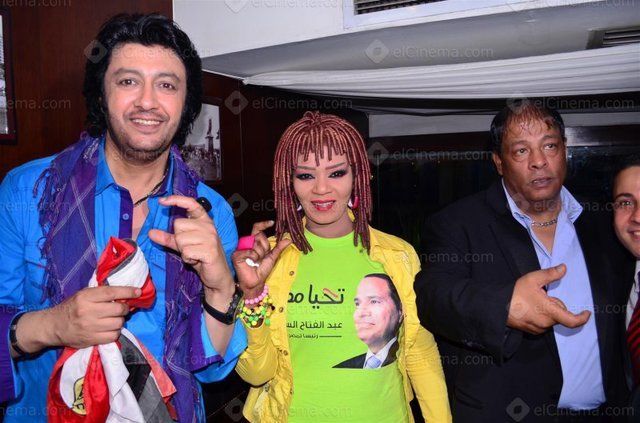 وكان في مقدمة الفنانين، المطرب إيهاب توفيق، الذي أعلن في أكثر من مناسبة سابقة عن تأييده للسيسي، كما تواجد أيضًا المطرب الشعبي عبدالباسط حمودة، والمطربة جواهر باﻹضافة إلى المطرب سامح يسري.