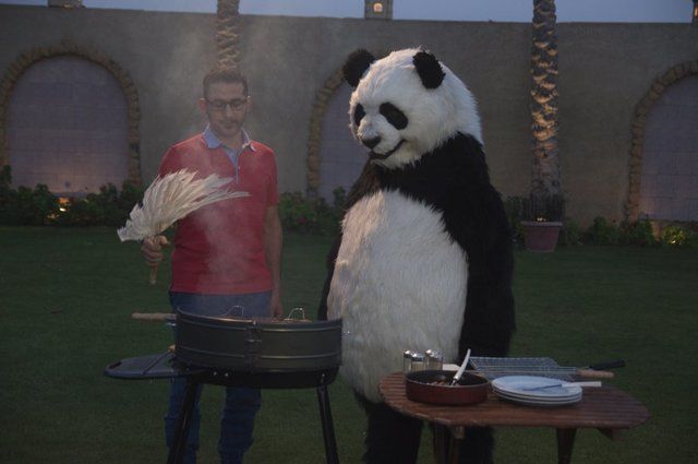 المشهد يظهر فيه دب "الباندا"، يلعب بالموبايل ويدخل عليه في الغرفة " عبد الله مشرف" ويسمع صوت الموبايل ويبحث عنه ولكن يبدو وكأنه يتحرش بالباندا التي تقول "أن هناك غرامة في قانون التحرش".