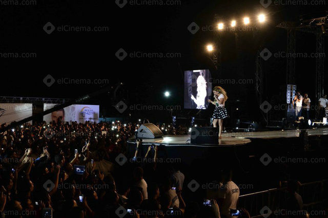 رزان اختارت ارتداء تنورة قصيرة من اللونين اﻷبيض واﻷسود مع تي شيرت أبيض، يناسب أجواء الصيف برأس سدر، وقالت رزان في كلمتها لتقديم الحفل أنها سعيدة بتقديم الهضبة عمرو دياب والتواجد مع جمهوره.