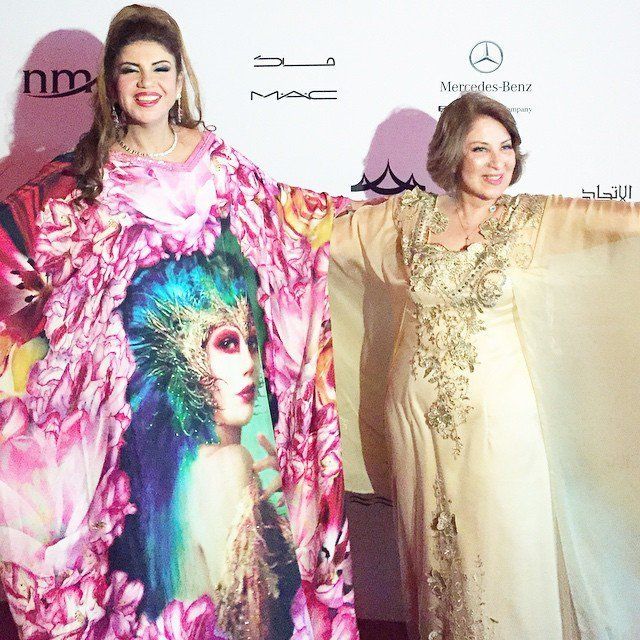 وظهرت بوسي مرتدية عباية عربية من تصميم منى المنصوري، ورافقتها أيضًا اﻹعلامية بوسي شلبي، التي ارتدت هي اﻷخرى عباية من تصميمات المنصوري مزركشة باﻷلوان، أظهرت رشاقتها.