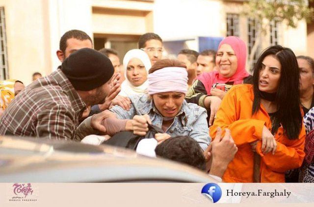 وظهرت حورية في الصور التى نشرتها عبر صفحتها الرسمية وحسابها الشخصى بموقع "فيسبوك"برفقة نجوم العمل النجمة إلهام شاهين و زينة.