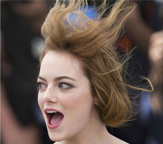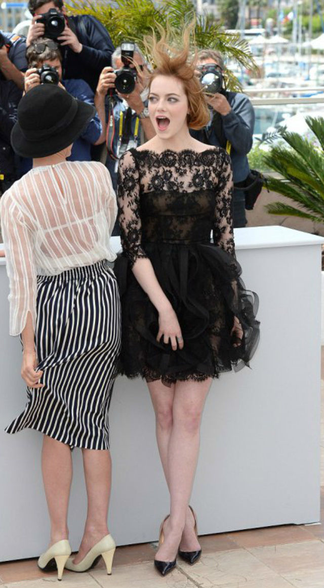 وكانت الممثلة اﻷمريكية إيما ستون أولى النجمات التي وُضعن في موقف حرج، وذلك أثناء مشاركتها في جلسة الـPhotocall الخاصة بفيلمها الجديد " Irrational Man" للمخرج الكبير وودي آلان، حيث تسببت الرياح الشديدة في ارتفاع طرف ثوبها اﻷسود من تصميمات أوسكار دي لا رينتا، باﻹضافة إلى بعثرة شعرها تمامًا، لكن في الواقع لا يهم، فـ"إيما" حصلت في نهاية اﻷمر على اﻷقل على صورة تشبه إلى حد بعيد النجمة مارلين مونرو في إحدى لحظاتها الأيقونية الشهيرة.