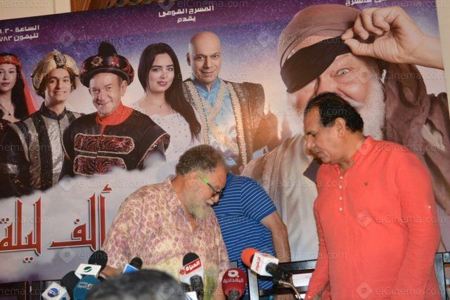عُقد يوم أمس المؤتمر الصحفي لمسرحية النجم الكبير يحيى الفخراني الجديدة " ليلة من ألف ليلة وليلة" وذلك في مقر المسرح القومي بمنطقة العتبة، بحضور سيد خاطر رئيس قطاع الإنتاج الثقافي، والمطرب الشاب محمد محسن وباقي أبطال المسرحية.