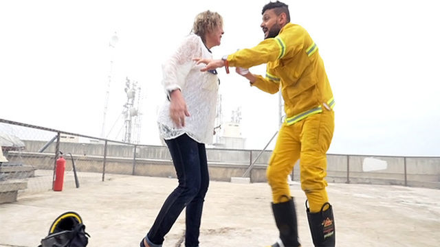 في البداية استقبل فريق البرنامج "مها" داخل الفندق وأُجروا معها حوارًا، ثم سرعان ما اشتعلت النيران في الغرفة التي تتواجد بداخلها مها لتهلع وتفزع وتضطرب، ثم دخل رامز الغرفة متخفيًا في زي رجل مطافي، وصعد بها لسطح المبنى.