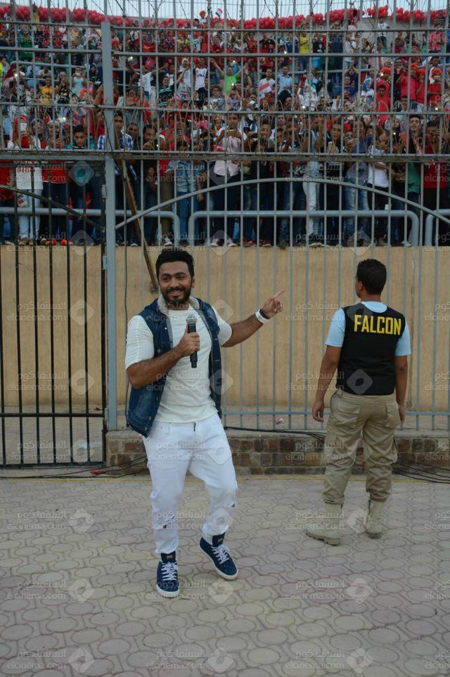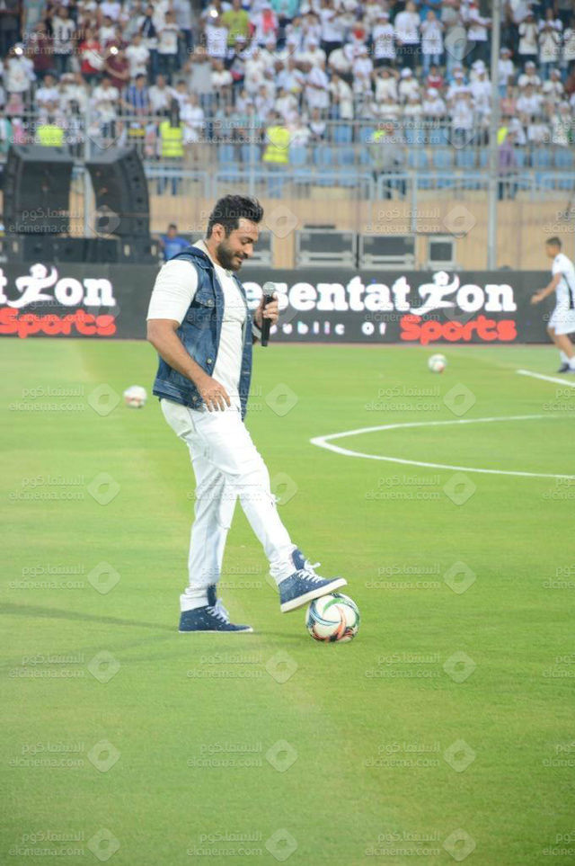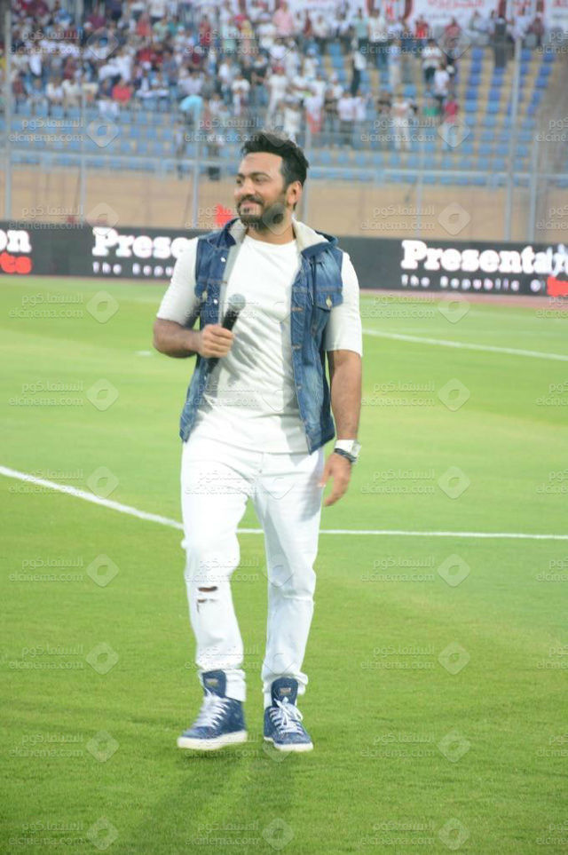 افتتح النجم تامر حسني مساء أمس الثلاثاء احتفالية مباراة نهائي كأس السوبر الإماراتي، المقام لأول مرة في مصر، بإستاد الدفاع الجوي وسط عدد من الجماهير المصرية والخليجية.