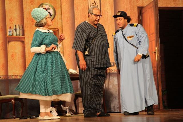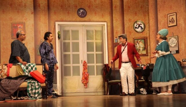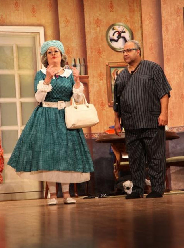 في الوقت نفسه يستمر عرض مسرحية "ساعتين الضهر" التي يؤدي فيها الفنان بيومي فؤاد دور موظف يعود من مأمورية عمله إلى منزله الخالي من الزوجة والأولاد المسافرين، ويرغب في النوم لساعتين فترة الظهيرة قبل الذهاب إلى عمله الآخر، ولكن في هاتين الساعتين يحدث ما لم يكن يتوقعه.
