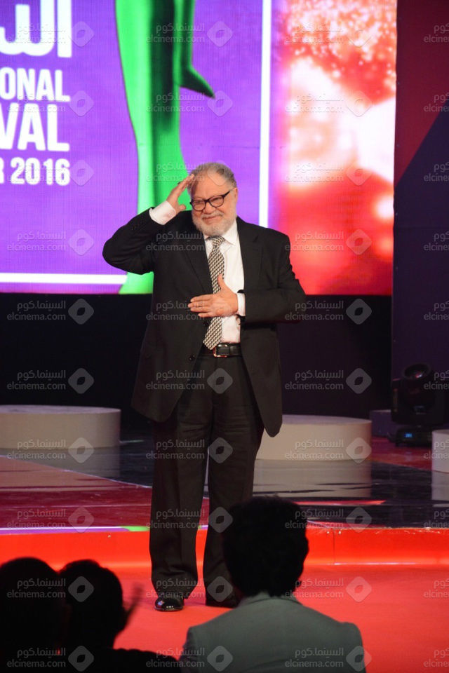 في البداية دعت الإعلامية جاسمين طه مُقدمة الحفل، وزير الثقافة حلمي النمنم ود.ماجدة واصف رئيس المهرجان والفنان محمود حميدة للصعود على المسرح لتكريم النجوم وتسليم الجوائز.