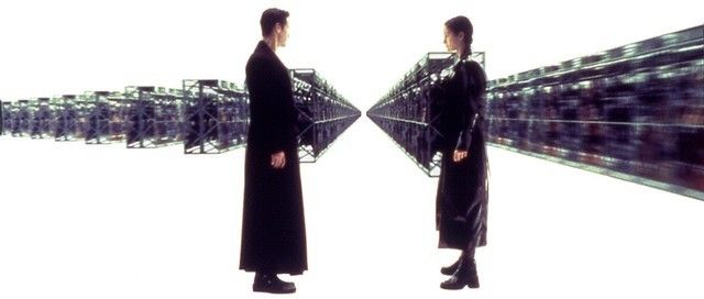 واحدةً من الكلاسيكيات التي لها مكانة خاصة في قلب كل مهووس بأفلام الخيال العلمي وأفلام الحركة على حدٍ سواء، الفيلم الذي ضرب كل مُخيِّلة وكل عقل مُبدع في صميمها بكيفية كتابة نص مثير وغاية في الفلسفية لأفلام الخيال العلمي قبل التفكير بأي شئ آخر في طريق العمل السينمائي.. الفيلم الذي به الكثير الكثير من الخيال والقليل القليل من العلم، البعض لاحظ حجم المُجاراة التي إتبعها النص لنظرية جوزيف كامبل الشهيرة (رحلة البطل) بإتباعها المحطات القصصية المألوفة في الأفلام الهوليوودية، البعض الآخر قال أن (المصفوفة) هي أحد الأعمدة الرئيسية التي بني عليها صناعة الفيلم التجاري/الأمريكي (البلوكبوستر) الذي يسير ضمن قالب الإبداع بعيدًا عن الإبتذال، بعيدًا عن الهُراء.. وبعيدًا عن السطحية والكليشيهيات التي تعصف بأفلام هوليوود الحديثة. أحد السمات المميزة التي يسوّقها هذا العمل لمُشاهدهُ هي حجم الأفكار والصبغة التخيُّلية والتقنيات التكنولوجية الحديثة التي تكتنف العمل تماماً، نصًا متماسكًا لفكرة واعدة تلامس ثنائية (السفر عبر الزمن/الصراعات الإفتراضية) بنيت عليها فيما بعد -بصورة لا تُخطئها العين- أنجح فيلم في تاريخ شباك التذاكر العالمي فيلم (Avatar) عندما قرر نص فيلم جيمس كاميرون مُشابهة نص هذا العمل بصورة أو بأخرى. البناء الخيالي/الإفتراضي للعالم الفيلمي في قمته، الكمبيوتر هنا هو محرك كل شئ في الأحداث، الفيلم يغزو عميقًا صورة العالم الإفتراضي لمرحلة ما بعد الحياة أو العيش في بُعداً آخر التي دائماً ما ألهبت خيالاتنا صغاراً وكانت مصدر هوس وولع لكثير من محبي الأفلام المُراهقين قبل الكبار.