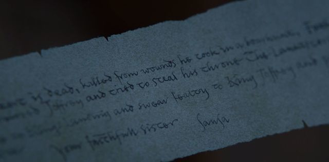 تبقى أهم نقلة في هذه الخط هو التصعيد الجاري ﻹذكاء الخلاف بين اﻷختين، والذي يقوم به ليتل فينجر، متحركًا في اﻷساس مما يعرفه عن عاطفية ومثالية وعدائية آريا، حيث تُدس الرسالة التي بعثت بها سانسا لشقيقها روب بضغط من سيرسي في الموسم اﻷول، مخرجًا إياها من سياقها الزمني الذي وقعت به ليضعها في سياق جديد يخدم به هذا الصراع.