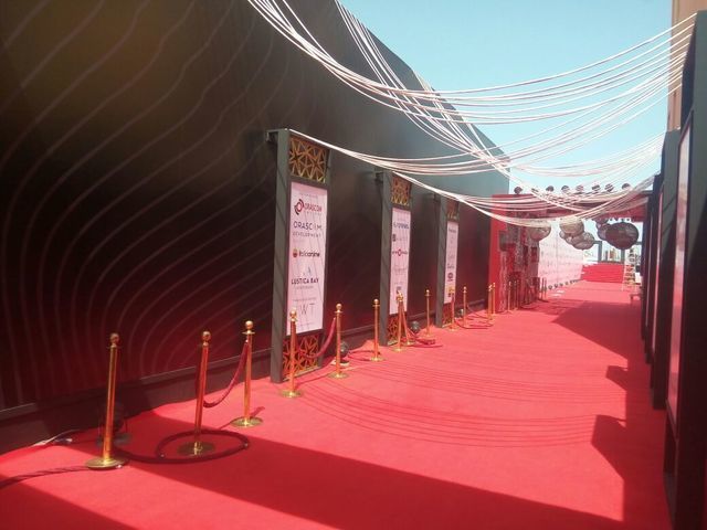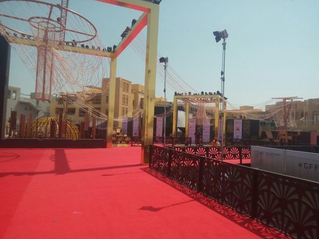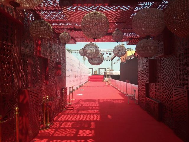 وجُهزت السجادة الحمراء وممرات دخول الفنانين وأصبحت جاهزة لاستقبال الفنانين مساء اليوم.