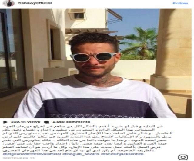 وقال أحمد الفيشاوي في الفيديو: "في البداية و قبل أى شىء، أتقدم بالشكر لكل من ساهم فى إخراج مهرجان الجونة السينمائى بهذا الشكل الرائع والمشرف من تنظيم وإعداد واهتمام دقيق بكل التفاصيل.. وشكر خاص لصاحب هذا الإنجاز المشرف المهندس نجيب ساويرس الذى لم يبخل بالمجهود ولا الإمكانيات لإنجاح مثل هذا الحدث الفريد فى مكان عالمى على أرض مصر اسمه الجونة، وهذا ما نتوقعه دائما من هذه العائلة.. عائلة ساويرس التى تقدر قيمة الفن والفنانين وأيضا تقدر قيمة مصر"