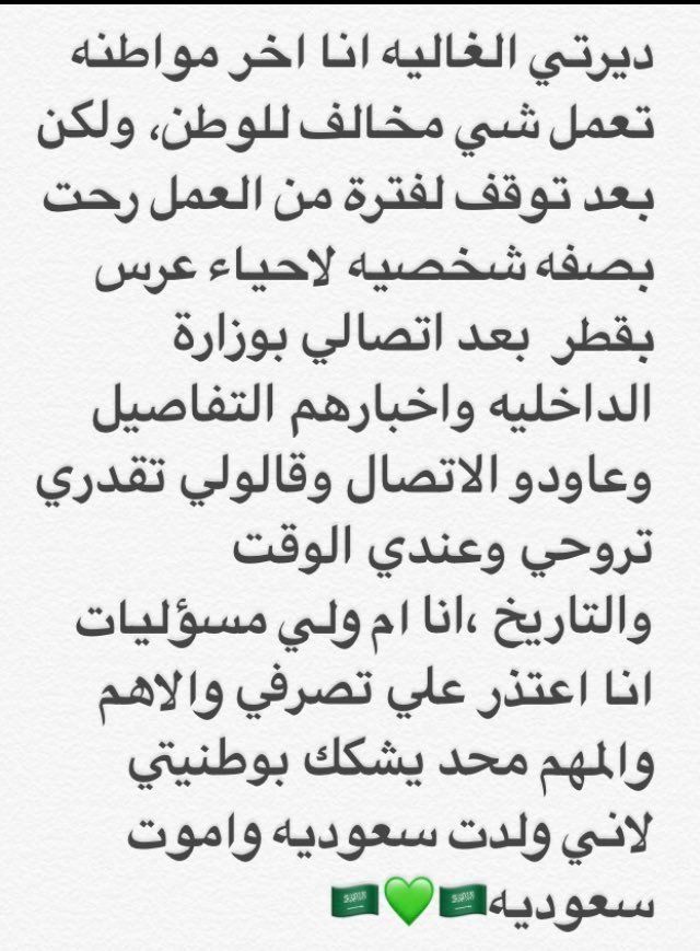 ورفضت وعد اتهاما بالخيانة قائلة “أنا آخر شخص يمكن أن يقوم بعمل ضد مصالح وطنه”، مؤكدة أنها ولدت سعودية وستموت سعودية مخلصة لوطنها.