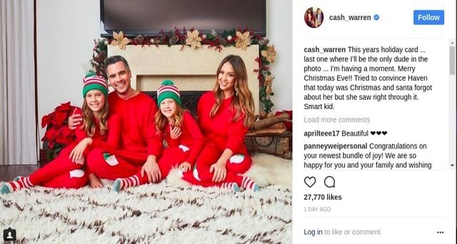 وشارك المنتج الأمريكي كاش وارين وزوجته الممثلة جيسيكا ألبا صورة لهما مع أطفالهما، على حسابه الرسمي بإنستجرام، وتمنى لمتابعيه عشية عيد ميلاد سعيدة.