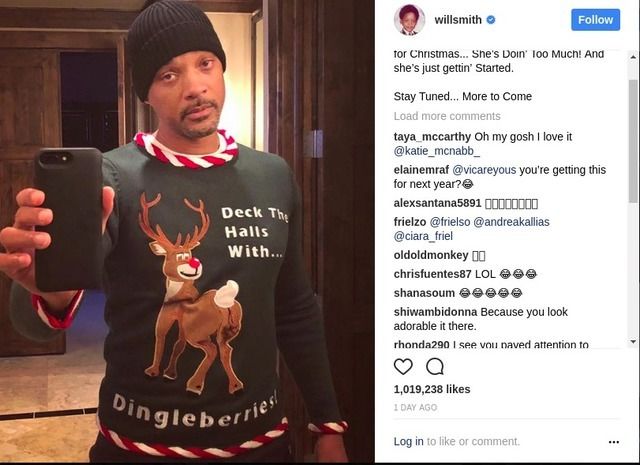 وهكذا احتفل النجم ويل سميث البالغ من العمر 49 عامًا بالكريسماس، وسط أولاده، ونشر صورة على صفحته الرسمية بموقع إنستجرام، مرتدي سويت شيرت للاحتفال.