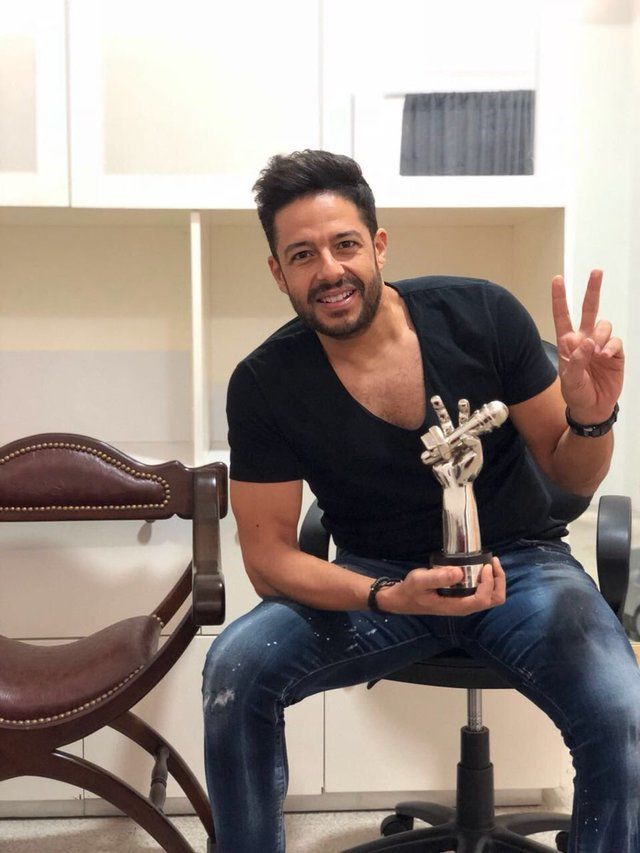 نشر الفنان محمد حماقي صورة عبر حسابه الشخصي بموقع "تويتر" ظهر فيها وهو يحمل جائزة برنامج "The Voice"