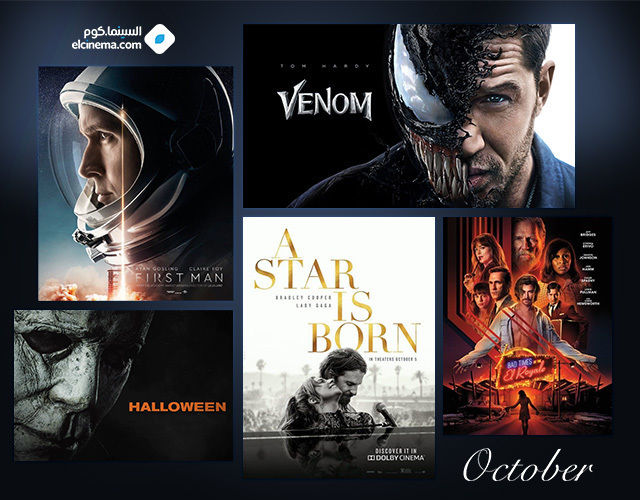 ينتظر محبي وعشاق السينما العالمية مجموعة متميزة ومشوقة من الأفلام التي ستنطلق في شهر أكتوبر المقبل، والتي تنوعت ما بين أفلام الخيال العلمي، والإثارة والتشويق، والموسيقي، وكان من أبرزهم فيلم الخيال العلمي والاكشن venom للنجم توم هاردي وفيلم A star is born أول تجربة إخراجية للنجم برادلي كوبر ومن بطولة ليدي جاجا بخلاف فيلم افتتاح مهرجان فينيسيا First Man.