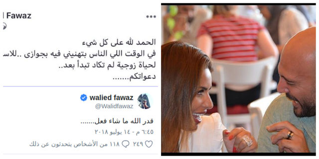 وكتب وليد على تويتر "في الوقت الذي اتلقى فيه تهنئتي بالزواج أعلن انتهاء حياة زوجية لم تكد تبدأ بعد.