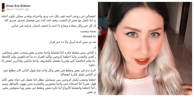 أعلنت المطربة إيناس عز الدين، انفصالها عن زوجها أحمد قمر، مؤكدة أنهما اختلفنا ومن الصعب أن يكملا كزوجين، ولكنهما سيظلان أصدقاء للأبد. وكتبت عزالدين على حسابها الشخصي على موقع "فيس بوك": "بعلن انفصالي عن زوجي أحمد قمر بكل حب وود واحترام وتقدير ممكن نكون اختلفنا كأزواج إننا نكمل مع بعض أو النصيب وقف لحد كدة بس هيفضل صديق عمري كله".