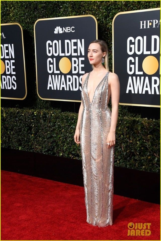 أما النجمة سيرشا رونان فكانت النجمة الأكثر بريقا على السجادة الحمراء بحفل توزيع جوائز جولدن جلوب، اختارت سيرشا فستانها وحذاءها من مجموعة " Gucci ، بينما انتقت مجوهراتها من Chopard .