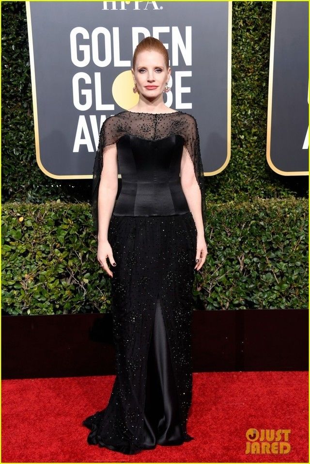و عن النجمة العالمية جيسيكا تشاستين فاختارت ان تخطف الانظار بالحفل بارتدائها فستان أسود أنيق من " Burberry " .