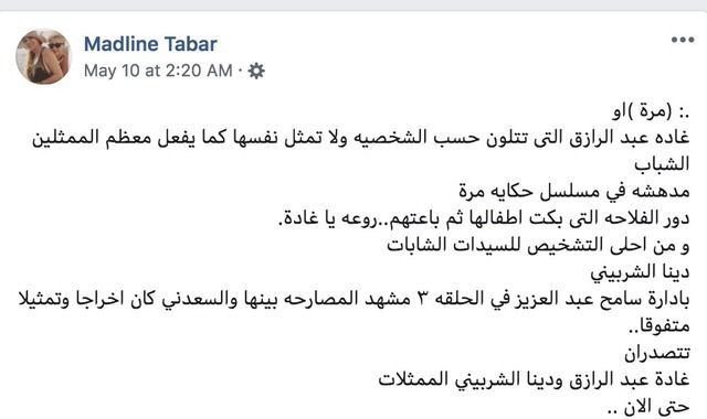 وعلى صفحته الرسمية أشاد وزير الإعلام الأسبق أنس الفقي بالنجمة دينا الشربيني في مشهدها مع النجم أحمد صلاح السعدني بعد معرفتها بخيانته مع شقيقتها، كما حيّت الإعلامية إيمان الحصري فريق عمل المسلسل، ووصفت النجمة مادلين طبر أداء دينا بأفضل تشخيص لدور نسوي، وعبّرت النائبة أنيسة حسونة بإعجابها بالمسلسل ومتابعته رغم عدم تحمسها له من البداية، كما أشاد فريق عمل الفيلم خاصةً المخرج سامح عبد العزيز، وأكد الناقد طارق الشناوي أن أداء دينا الشربيني كان ناعم وليس به تكلف وأن الدور الذي تقدمه من أصعب الأدوار لانه متعدد الأوجه يحمل مشاعر متناقضه بين الحب والكره والشك ويحمل كثيرا من التفاصيل تقدمها برشاقه وخفه.