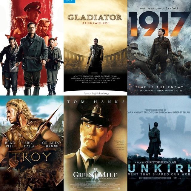 وعن قائمة أفضل الأفلام الأجنبية التي تناولت الشجاعة والفروسية والحروب نجد ما يلي من أعمال فنية عظيمة: